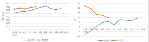圖1 2020、2021年分月全社會(huì)用電量及其增速