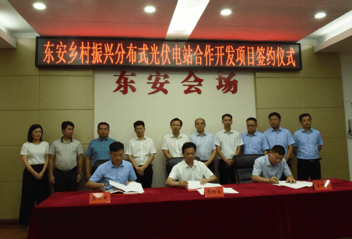 7月23日,國家電投集團江西電力有限公司和中城投集團新能源有限責任公司開發建設的東安鄉村振興分布式光伏電站合作開發項目的簽約儀式正式舉行。該項目總投資達45億元,計劃用5年時間在東安縣實施分布式光伏發電應用工程,建設15個光伏發電應用示范鄉鎮及300個示范村,建設裝機規模達到800兆瓦+200兆瓦儲能電站,將東安打造成全省分布式清潔能源示范基地。