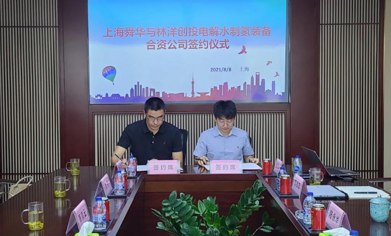 2021年8月8日,在林洋能源上市十周年之際,林洋能源全資子公司林洋創業投資(上海)有限公司與上海舜華新能源系統有限公司成立合資公司的簽約儀式在上海舉行。上海舜華董事長高頂云,副總經理陳華強,林洋集團總裁、林洋能源董事長陸永華,林洋集團副總裁方壯志、陳金敏,林洋創投總經理婁與峰等領導,上海氫能利用工程技術研究中心常務副主任陳海林,同濟大學副教授、氫能研究室主任呂洪以及中科院上海硅酸鹽所等相關行業專家共同出席簽約儀式。