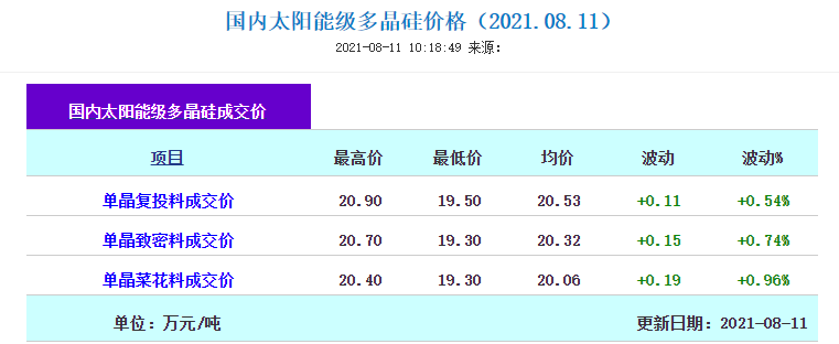 8月11日,硅業分會發布多晶硅最新價格信息,多晶硅價格在下半年五連降后首次上漲。