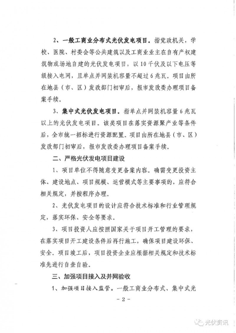 集中式光伏發(fā)電項(xiàng)目:指單點(diǎn)并網(wǎng)裝機(jī)容量6兆瓦以上的光伏發(fā)電項(xiàng)目。該類項(xiàng)目在落實(shí)資源聚產(chǎn)業(yè)等條件后,全市統(tǒng)一招標(biāo)進(jìn)行資源配置。項(xiàng)目由所在地縣(市、區(qū))