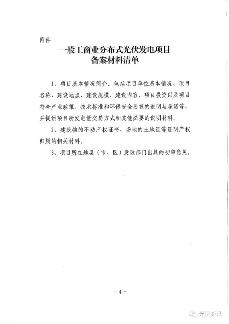 一般工商業(yè)分布式光伏發(fā)電項(xiàng)目:指黨政機(jī)關(guān),學(xué)校、醫(yī)院、村委會(huì)等公共建筑以及工商業(yè)業(yè)主在自有產(chǎn)權(quán)建筑物或場(chǎng)地自建的光伏發(fā)電項(xiàng)目,以10千伏及以下電壓等級(jí)接入電網(wǎng),且單點(diǎn)并網(wǎng)裝機(jī)容量不超過6兆瓦。項(xiàng)目由所在地縣(市、區(qū))發(fā)改部門初審后,報(bào)市發(fā)改委辦理項(xiàng)目備案手續(xù)。
