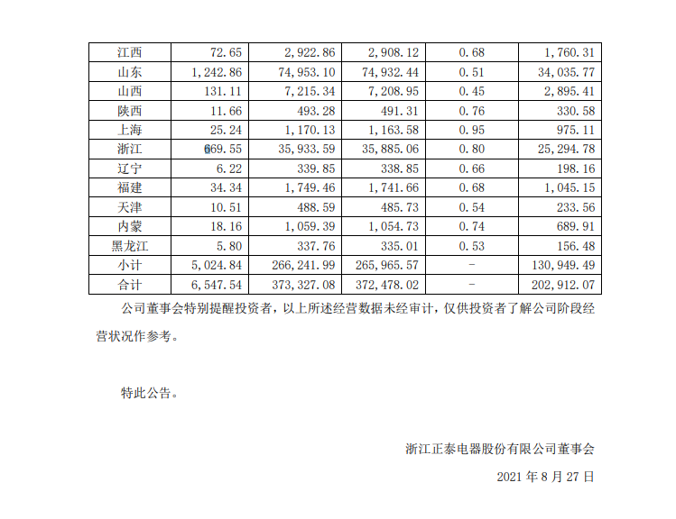 8月27日,正泰發布浙江正泰電器股份有限公司關于 2021 年半年度
