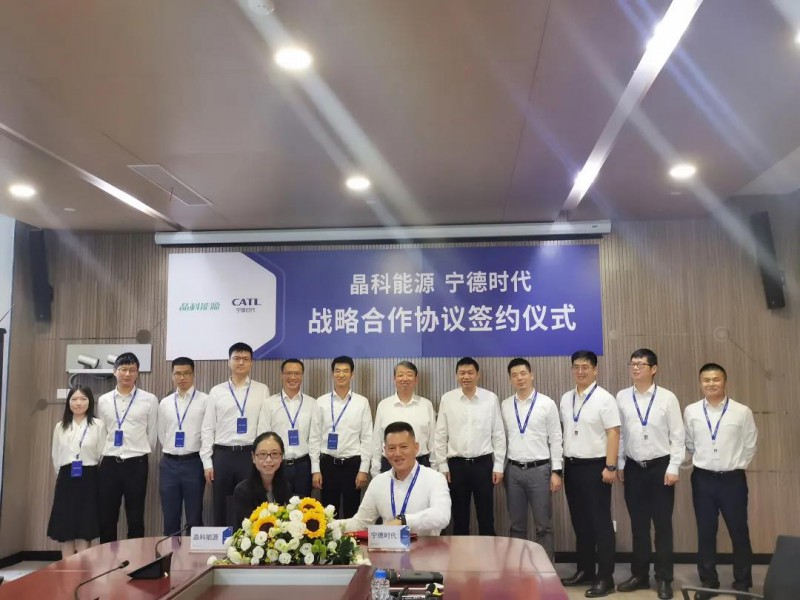晶科能源首席執行官陳康平、副總裁錢晶、副總裁王發萬,寧德時代總裁周佳、首席客戶官&儲能事業部總裁譚立斌、儲能業務部總經理朱巖松等領導出席本次簽約儀式。