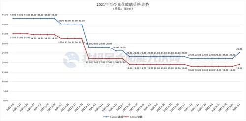 3.2mm鍍膜價格約每平方米24-27元人民幣,較上周上漲3元/㎡;光伏玻璃2.0mm鍍膜價格約每平方米18.8-21元人民幣,均價較上周上漲1元/㎡。