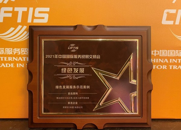 賽萊默農村污水處理項目榮獲2021年中國國際服務貿易交易會“綠色發展服務示范案例”。