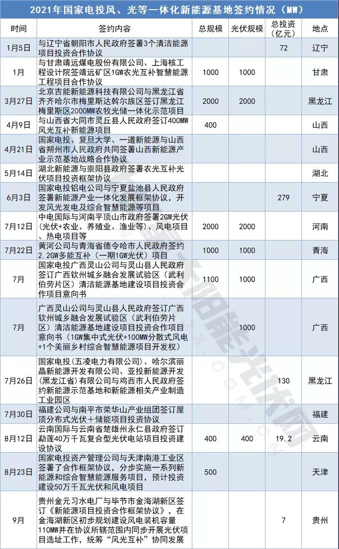 而截至目前,國家電投與遼寧、甘肅、黑龍江等13個省區市簽約16個風、光等一體化新能源基地項目,明確規模的超8.4GW。