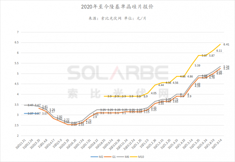 從公示信息看,G1(158.75mm)報價5.24元/片,較上月上漲0.25元/片;