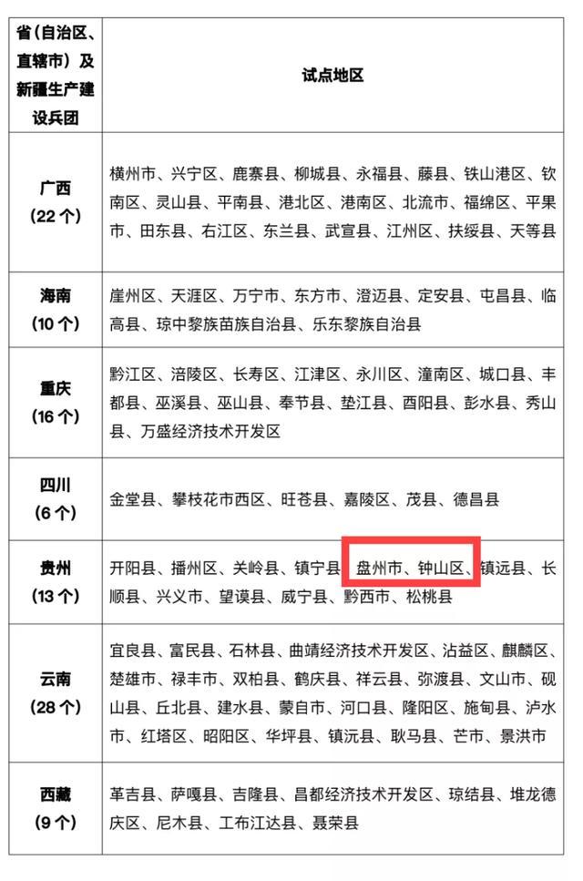 圖為部分整縣(市、區)屋頂分布式光伏開發試點名單