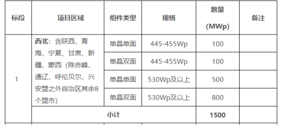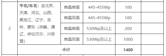 第三標段中標單價1.803元/W,大尺寸光伏占比80%,雙面大尺寸占比80%。