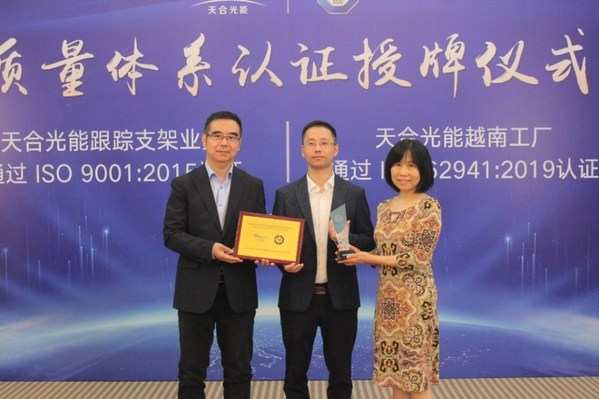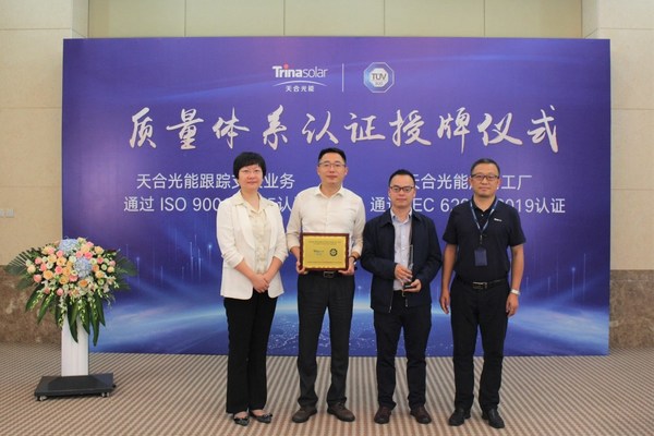 TUV南德為天合光能ISO 9001:2015質量管理體系認證跟蹤支架業務授牌
