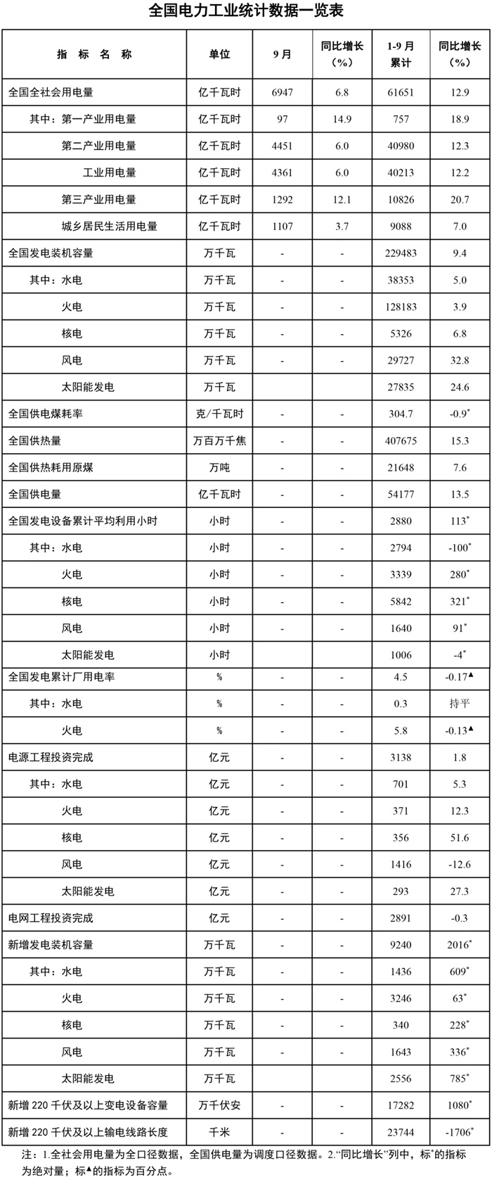 國家能源局發(fā)布1-9月份全國電力工業(yè)統(tǒng)計(jì)數(shù)據(jù)。截至9月底,全國發(fā)電裝機(jī)容量22.9億千瓦,同比增長9.4%。其中,風(fēng)電裝機(jī)容量約3.0億千瓦,同比增長32.8%。