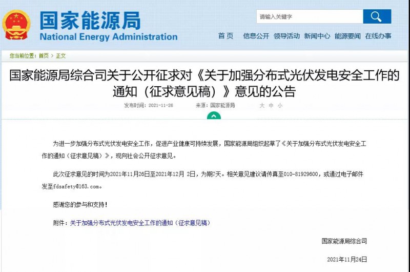 關于加強分布式光伏發電安全工作的通知(征求意見稿)