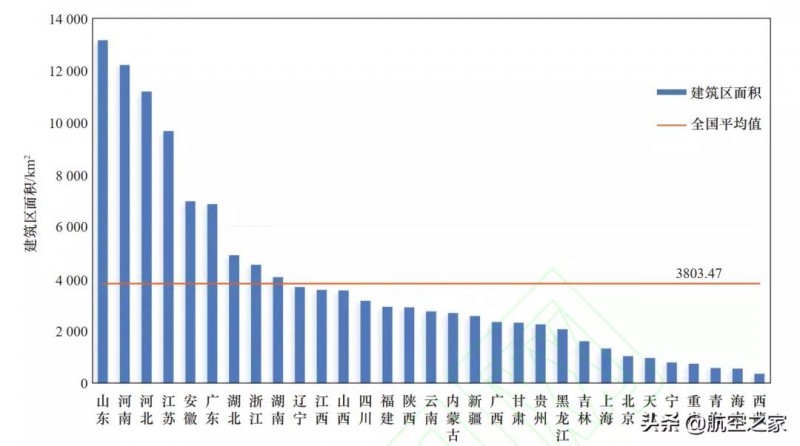 圖、我國各省建筑區面積統計圖