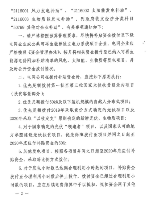 按照《財政部國家發(fā)展改革委國家能源局關(guān)于印發(fā)<可再生能源電價附加資金管理辦法>的通知》(財建〔2020〕5號)文件要求,國家電網(wǎng)有限公司(以下簡稱“公司”)將可再生能源電價附加中央補助資金的撥付原則和順序等相關(guān)情況公告如下: