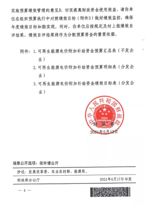 附件:《財政部關(guān)于下達2021年可再生能源電價附加補助資金預算的通知》(財資〔2021〕94號)