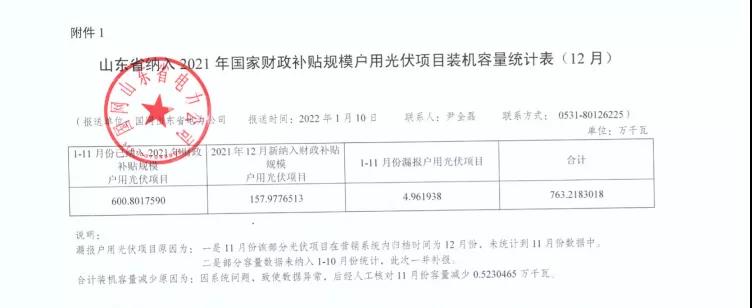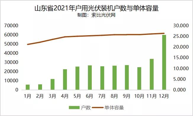 1月12日,國網(wǎng)山東省電力公司發(fā)布了山東省納入2021年國家財政補貼規(guī)模戶用光伏項目信息。據(jù)統(tǒng)計,12月共59919戶居民安裝戶用光伏系統(tǒng),裝機容量157.9776513萬千瓦,約1.58GW。加上1-11月裝機和此前漏報項目,2021年納入補貼規(guī)模的戶用光伏項目裝機容量共763.2183018萬千瓦,約7.63GW,比2020年增長約66.6%。