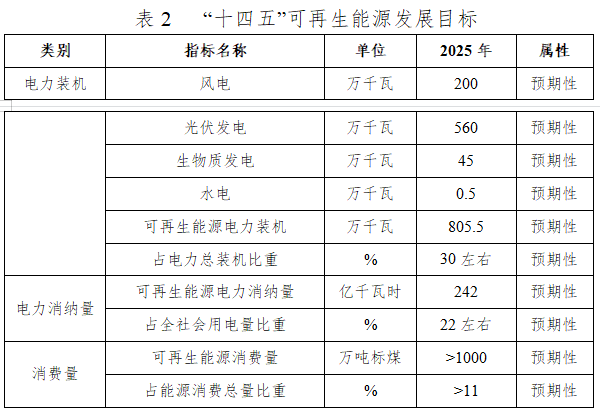 到2025年,全市投產(chǎn)可再生能源電力裝機(jī)超過(guò)800萬(wàn)千瓦,占電力總裝機(jī)的比重達(dá)到30%左右,力爭(zhēng)開發(fā)建設(shè)規(guī)模達(dá)到1000萬(wàn)千瓦;完成國(guó)家下達(dá)的可再生能源電力消納責(zé)任權(quán)重指標(biāo),可再生能源電力消納量占全社會(huì)用電量的比重達(dá)到22%左右;可再生能源消費(fèi)量折合標(biāo)煤超過(guò)1000萬(wàn)噸,占能源消費(fèi)總量的比重超過(guò)11%,力爭(zhēng)提高4個(gè)百分點(diǎn)以上。