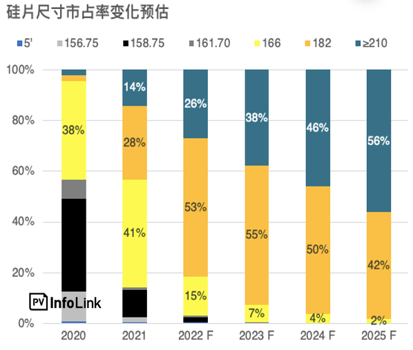 2022年大硅片市占率近80%(來源:PV Infolink光伏技術趨勢報告2022年2月)