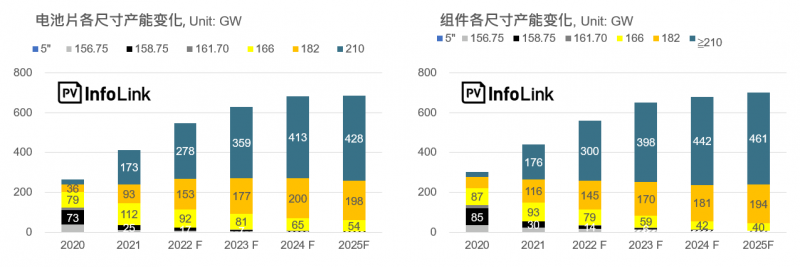 2021年年底,大尺寸組件產能超過290GW,210首超過182(來源:PV Infolink)