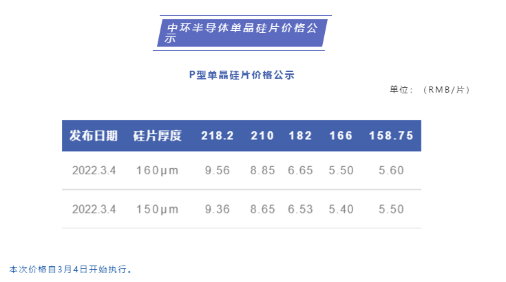 3月4日,中環(huán)股份公布硅片報價!