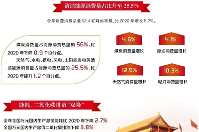 國家統計局2月28日發布的《2021年國民經濟和社會發展統計公報》顯示,2021年我國能源消費結構持續優化,清潔能源消費量占比升至25.5%,較2017年大幅提高5個百分點,全年全國萬元國內生產總值能耗和二氧化碳排放實現“雙降”,標志著“十四五”開局之年能源產業綠色低碳轉型成效顯著。