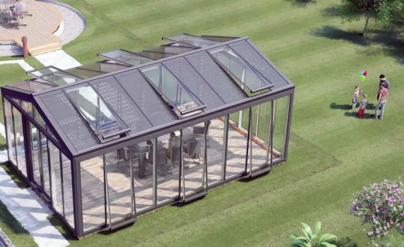 同時,固德威陽光房布置了帷幔系統(tǒng),頂上為可開啟的產能模塊,產能模塊具有柔和透光的功能,但并不會在室內形成光斑。當帷幔和遮陽全部開啟的狀態(tài)下,它可以說是一座景觀亭,路過的人們可以在這里小憩歇腳。對于這樣一個集成主動產能、多樣化空間的零碳陽光房,固德威非常有信心。