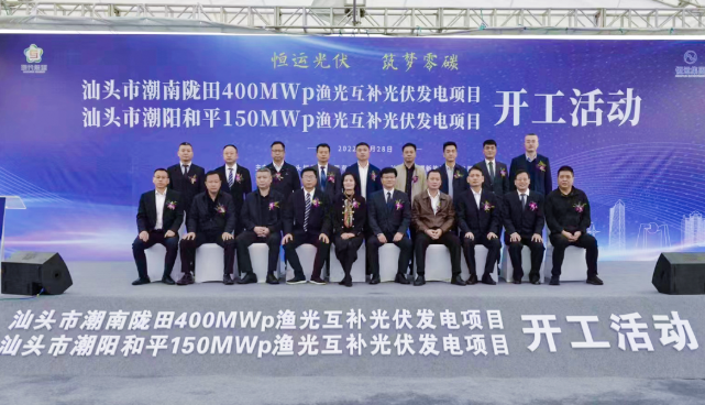汕頭市潮南區區委副書記王曉韓,項目投資方現代能源集團黨委副書記、總經理肖立,廣州恒運企業集團黨委委員、副總經理周水良,廣州恒運新能源公司董事長、汕頭恒鵬新能源執行董事張文強,與正泰新能源總裁助理黃啟銀等政府、企業代表出席開工儀式。