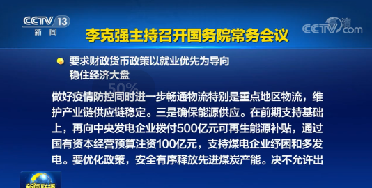 國(guó)務(wù)院總理李克強(qiáng)5月11日主持召開國(guó)務(wù)院常務(wù)會(huì)議,會(huì)議要求:確保能源供應(yīng)。在前期支持基礎(chǔ)上,再向中央發(fā)電企業(yè)撥付500億元可再生能源補(bǔ)貼,通過國(guó)有資本經(jīng)營(yíng)預(yù)算注資100億元,支持煤電企業(yè)紓困和多發(fā)電。