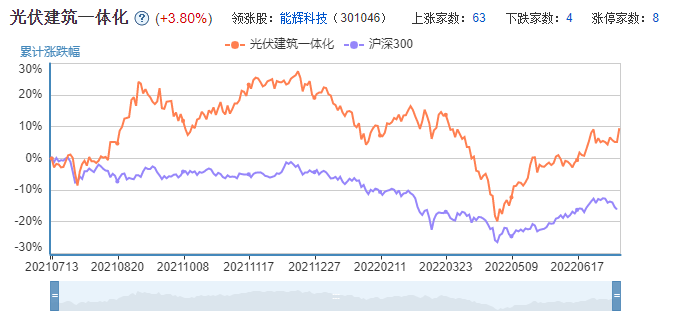 具體到企業來看,截至發稿前,光伏建筑一體化概念中,能輝科技、中信博、羅普斯金、方大集團、清源股份、亞瑪頓等領漲。