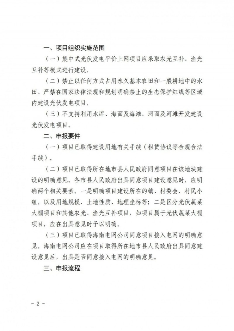 為貫徹落實《海南省發展和改革委員會關于開展2022年度海南省集中式光伏發電平價上網項目工作的通知》(瓊發改能源〔2022〕12號)要求,更好地服務企業來我縣投資建設2022年度集中式光伏發電平價上網項目,進一步優化我縣營商環境,防止出現企業申報集中式光伏發電平價上網項目“建設地點、用地性質、用地規模等把關不嚴”及“一地多批”等問題,導致項目經省備案審核通過卻難以落地現象。現將有關要求明確如下: