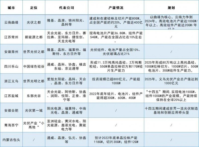 除了向富集資源處“扎堆”,另一個明顯趨勢是跟隨大客戶腳步。正因如此,在地方政府的招商列表中,“龍頭企業(yè)”排在絕對優(yōu)先級,義烏、曲靖等新型光伏產(chǎn)業(yè)之城的崛起更都充分佐證這一觀點(diǎn)。