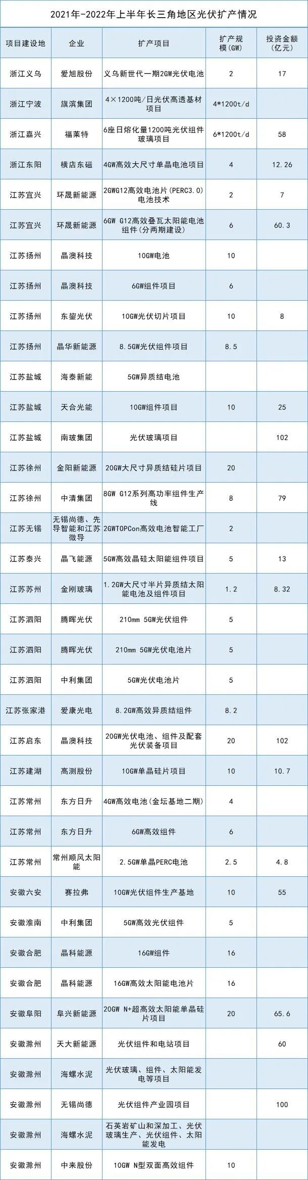 從近兩年光伏擴(kuò)產(chǎn)情況來看,電池、組件端擴(kuò)張仍舊聚集在長三角地區(qū),據(jù)北極星太陽能光伏網(wǎng)統(tǒng)計(jì):僅2021年至2022年上半年,長三角三省的電池、組件擴(kuò)產(chǎn)規(guī)模近400GW。