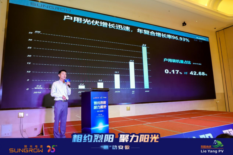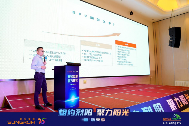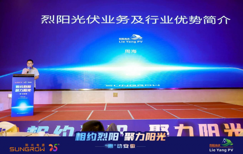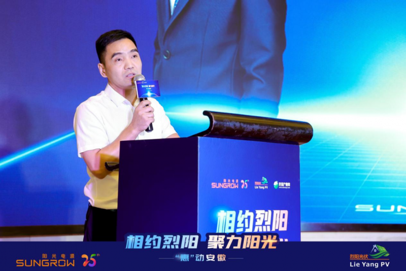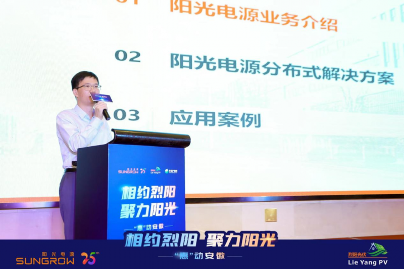 會議伊始,陽光電源國內分布式銷售總監汪瑞首先在致辭中表示:隨著雙碳目標的提出,光伏行業進入快速發展的軌道,尤其是分布式光伏領域,近幾年增長翻倍。陽光電源作為全球逆變器的龍頭企業,同時也是安徽本土企業,一直期盼著能為安徽光伏產業做出更多的貢獻,希望今天借此機會與烈陽光伏一起為大家搭建一個互動交流的平臺,同時也為現場的嘉賓帶來更優惠的政策。