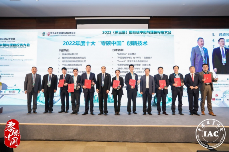技術創(chuàng)新是實現(xiàn)碳達峰、碳中和的核心驅動力,“零碳中國”行動高度重視、支持和推廣優(yōu)秀的零碳創(chuàng)新技術。在大會上,中國投資協(xié)會能源投資專委會張杰秘書長發(fā)布了2022年度十大“零碳中國”創(chuàng)新技術,隆基綠能以“異質結高效電池創(chuàng)新技術”獲得該項殊榮。