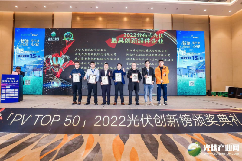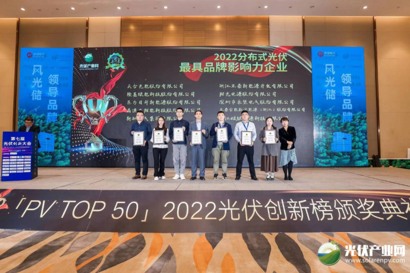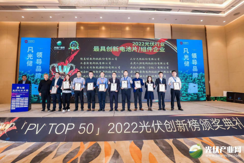 11月21日,「PV TOP 50」2022光伏創新榜頒獎典禮(「PV TOP 50」2022光伏行業創新力企業50強榜單發布)在浙江·杭州圓滿落下帷幕!