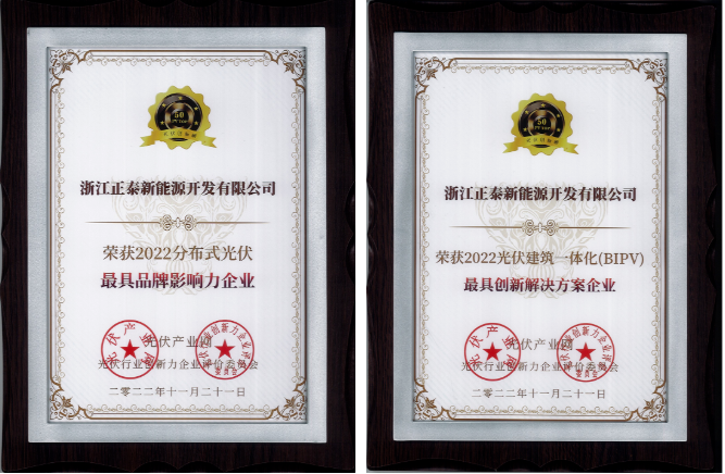大會同期還舉辦了「PV TOP 50」2022光伏創新榜頒獎典禮,表彰2022年度“最具創新力”標桿企業,授予正泰新能源“分布式光伏最具品牌影響力企業”以及“光伏建筑一體化(BIPV)最具創新解決方案企業”,充分肯定了正泰新能源在分布式光伏領域做出的突出貢獻,以及在建筑光伏一體化領域的技術研發投入及創新等方面獲得的巨大進步。