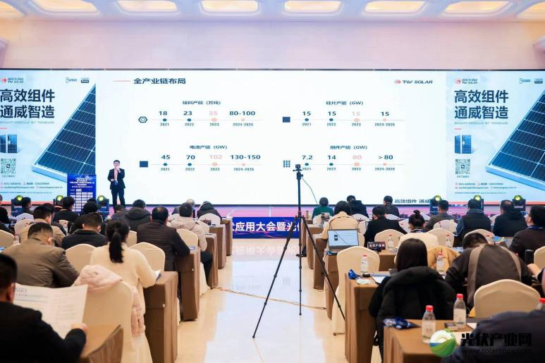 作為光伏行業的龍頭企業,通威太陽能在硅料、硅片、電池片、組件全產業鏈深度布局和發展,23年產能規劃分別為35萬噸、15GW、102GW、80GW。通威太陽能技術服務高級經理何梟飛通過介紹182系列、210系列、TOPCON和HJT等不同組件及其適用應用場景,并論述了組價產品的半片封裝技術、無損切割技術、高密度封裝技術、SMBB技術等多項優勢,展現了通威在組件環節的高效性和領先性。另外值得一提的是通威建有全面的質量管控體系,覆蓋材料、制程、成品可靠性全流程,確保產品穩定可靠。