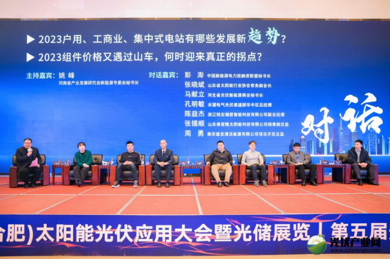 河南省產業發展研究會新能源專委會秘書長姚峰與7位對話嘉賓圍繞“2023戶用、工商業、集中式電站有哪些發展新趨勢?”、“2023組件價格又遇過山車,何時迎來真正的拐點?”等內容展開了熱烈討論和交流。