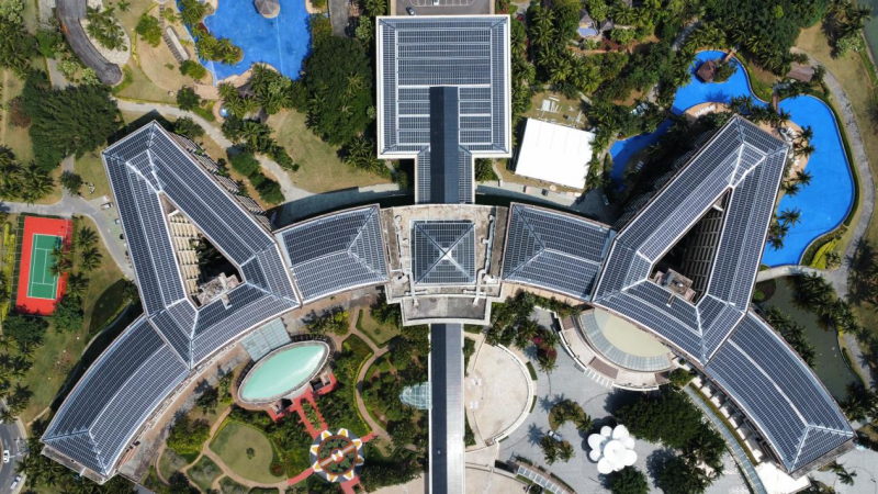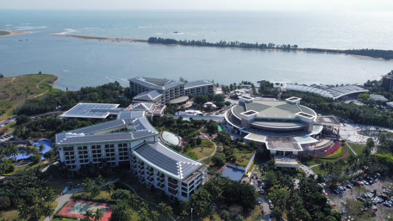 于是,在島內亞論酒店、新聞中心、停車場等可利用的屋頂、空地上,一塊塊光伏組件產品成為這些地標建筑的“新外衣”,源源不斷地為博鰲亞洲論壇提供重要的綠電供應和保障。