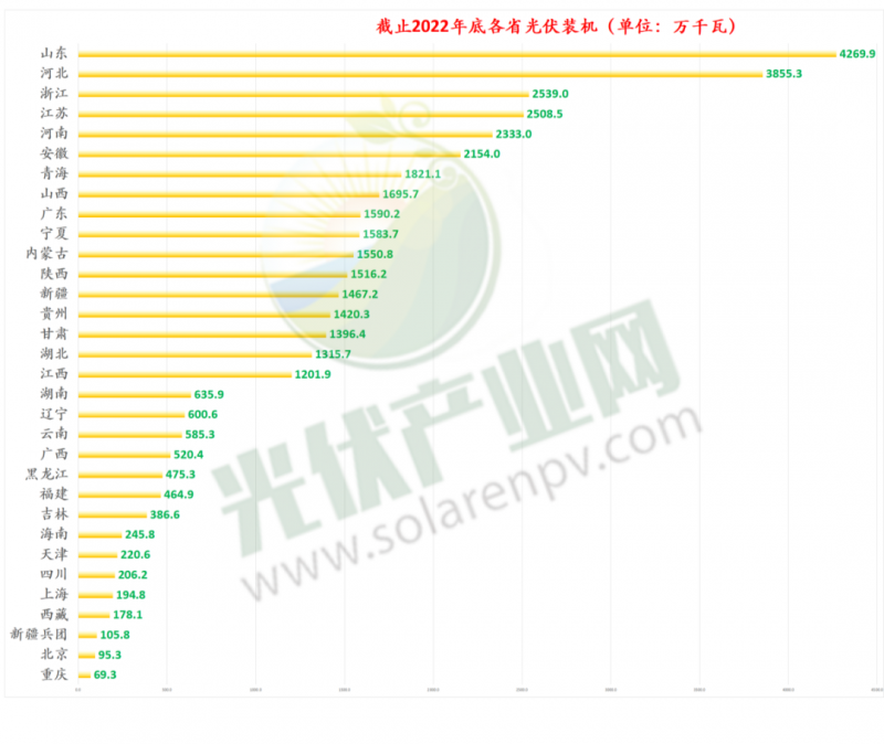 “世界光伏看中國,工商業光伏看浙江”。作為我國分布式光伏市場的發源地之一,目前浙江省的光伏產業體系發展已較為完整,截至2022年底,全省光伏規上企業184家,總產值2498.6億元,同比增長64.9%;光伏組件產量98GW,占全國產量的33.9%,電池產量75GW,占全國產量的23.6%;新增光伏裝機6.97GW,居全國第四。