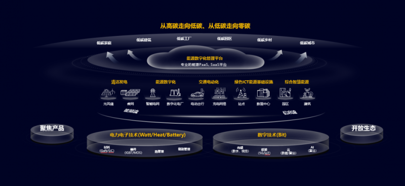 同時,我們聚焦核心產品,開放生態,將我們的技術能力和產品開放給我們的客戶、合作伙伴,與客戶、伙伴、產業組織等一起共生長、共發展,面向全球的家庭、建筑、工廠、園區、鄉村、城市等主要場景,推動社會從高碳走向低碳,從低碳走向零碳。