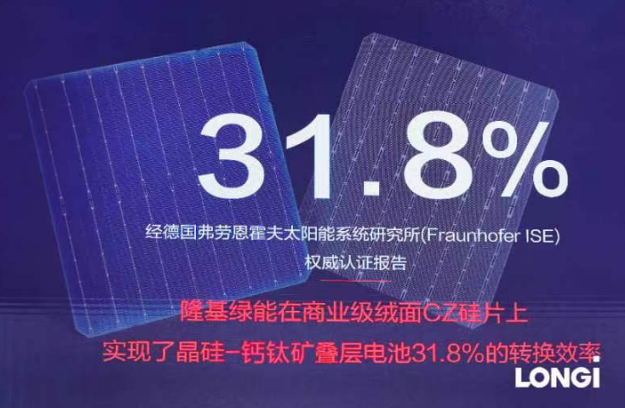 隆基始終專注太陽(yáng)能電池轉(zhuǎn)換效率的提升。近日,隆基在商業(yè)級(jí)絨面CZ硅片上實(shí)現(xiàn)了晶硅-鈣鈦礦疊層電池31.8%的轉(zhuǎn)換效率,該技術(shù)將成為隆基布局未來(lái)創(chuàng)新技術(shù)、突破產(chǎn)業(yè)化的又一重大方向。