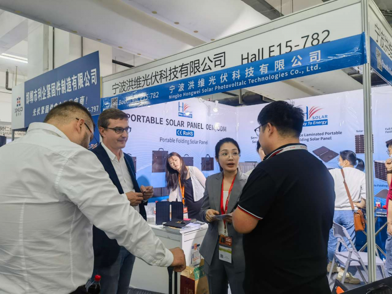 在這場鏈接光伏全產業鏈的盛會上,洪維光伏作為行業領先的綠色新能源系統ODM專業集成供應商,攜旗下手提便攜折疊太陽能充電包、ETFE一體層壓式便攜折疊太陽能電池板、半柔性太陽能發電板、玻璃便攜折疊太陽能電池板、全黑玻璃便攜折疊太陽能電池板、鋁框便攜太陽能電池板等六大系列產品盛裝亮相(展位號:E15-782),重點展示了融合最新制造工藝的兩大明星產品系列,包括半柔性太陽能電池板、ETFE一體層壓式便攜折疊太陽能電池板。這些產品均以嚴格標準選材,并在生產制造過程中執行嚴苛的質量管理規范,確保產品在轉換效率、耐用性能、自潔能力等方面均能達到業界最高標準要求。