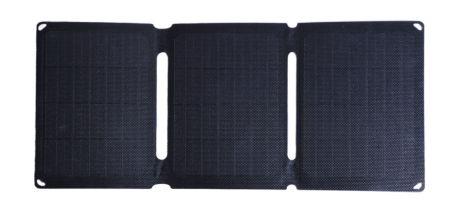 不同的是,該系列產品的電池板采用了基于正A單晶硅片的至少2塊電池片設計,防水面板則選用了IP65等級的聚酯織物材質,另外設計了可調節支,架用于幫助太陽能板變換角度、接受更多光照,提高發電效率。配置清單也是豐富地包含了兼容USB-1/ USB-2/ USB-C&DC5525輸出端口的多功能接線盒,以及3米長連接線和10合1 DC轉接頭。