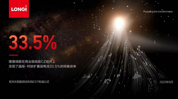 隆基宣布實現在商業級絨面CZ硅片上實現晶硅-鈣鈦礦疊層電池33.5%轉換效率