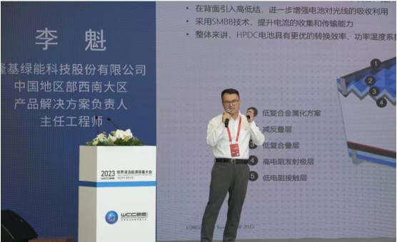 隆基綠能中國地區(qū)部西南大區(qū)產品解決方案負責人、主任工程師李魁介紹Hi-MO 7新品價值