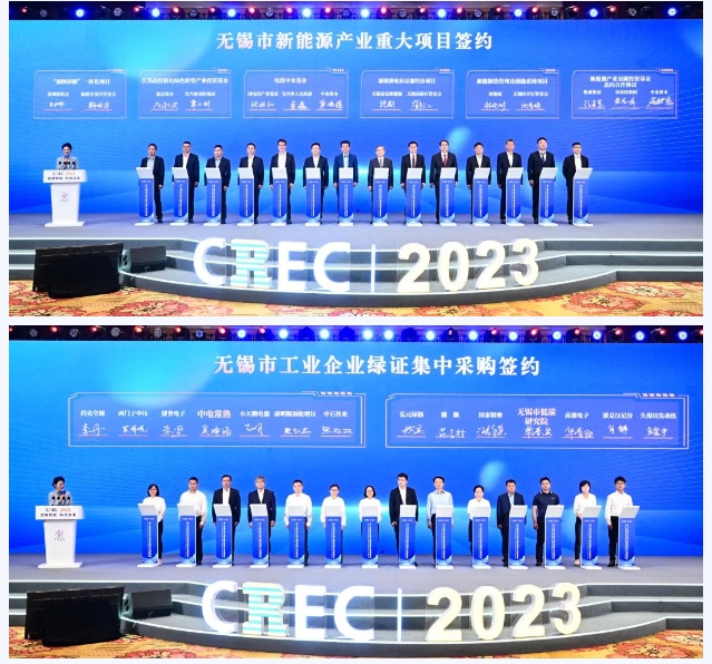 聚酰亞胺鋰離子電池隔膜項目、奧特維科技新能源智能裝備產業園三期項目、電投中金基金等27個重大項目現場集中簽約,合同金額539億元,同時無錫工業企業采購了規模達5億元的綠證。