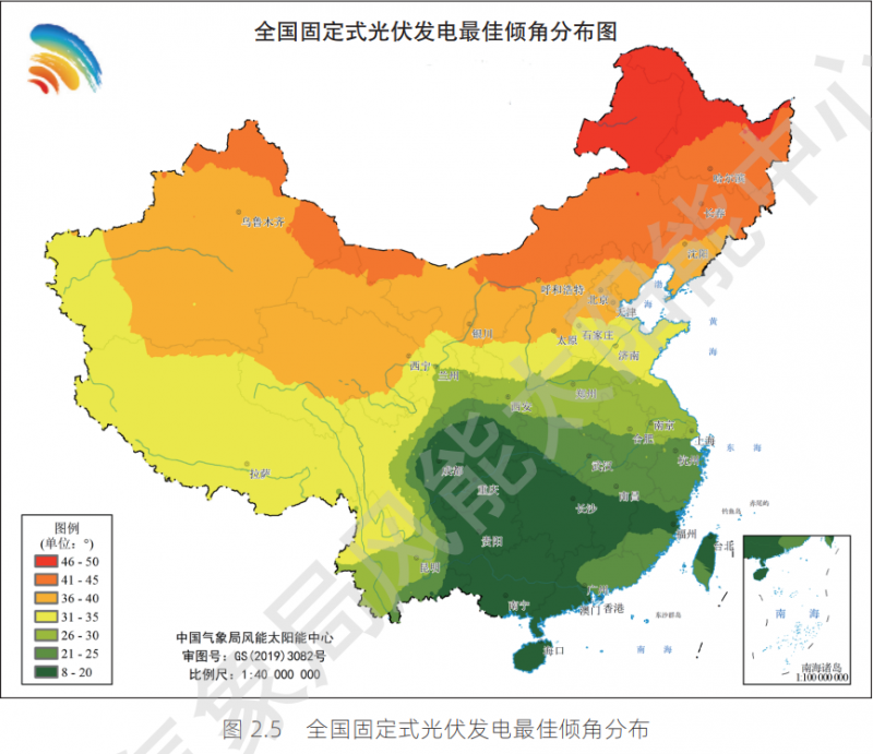 固定式光伏發電可利用的太陽能資源是光伏組件按照最佳傾角放置時能夠接收的太陽總輻照量(簡稱“最佳斜面總輻照量”)。根據目前國內的設計經驗,按照 80% 的總體系統效率, 計算出固定式光伏電站的首年利用小時數。