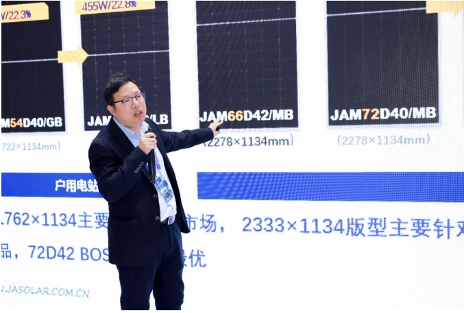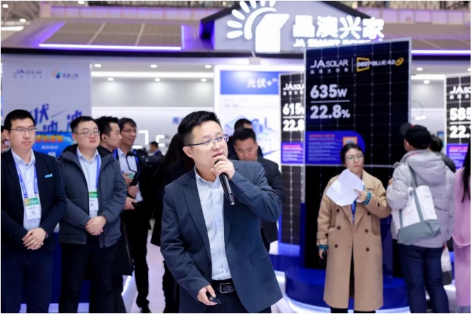 為幫助參展觀眾深入了解晶澳科技產品,晶澳科技專家在展會現場圍繞最新光伏組件產品、五大戶用創新方案產品、儲能設備及光儲一體化解決方案產品、零碳綜合解決方案產品和工商業一體化解決方案產品等方面分享了技術報告。